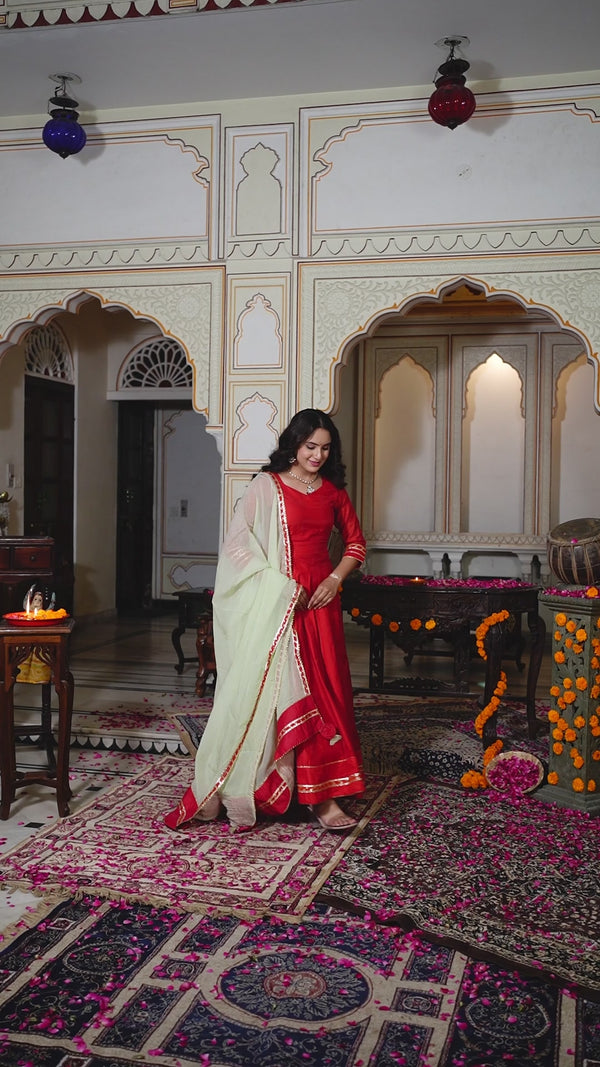 Be the first to review “Crimson Red Chanderi With Green Dupatta”