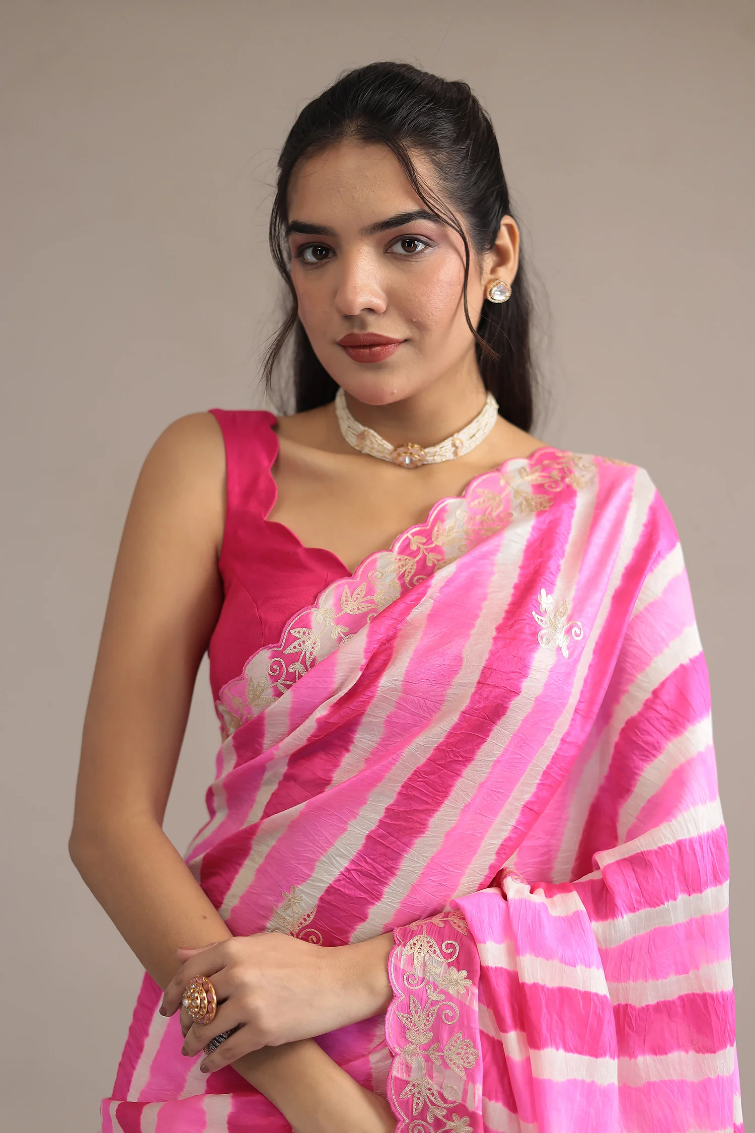 The art or craft or pattern in the saree is Embroidered.